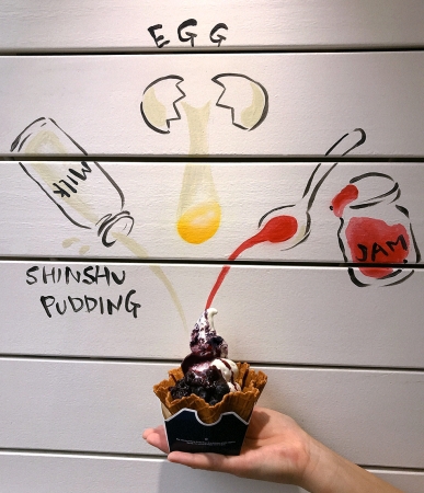 またジャム作りとともに「ジャムはパンと食べるもの」という一般的な考え方だけでなく、もっと様々なシーンにおいてジャムの美味しさを楽しんで頂きたいという想いから、ジャムの新たな可能性も日々探求している。その一環としてスイーツとしてジャムを使った新たな価値を提供できないかと考え、昨年4月にジャムを美味しく食べて頂くスイーツとして、プリン専門店「信州プリン工房」をオープンした。