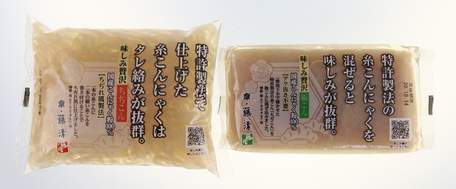 こんにゃく製造の画期的特許技術を活用 藤清が「味しみ贅沢」の「ちぢこん」と 「板こん」を新発売 |