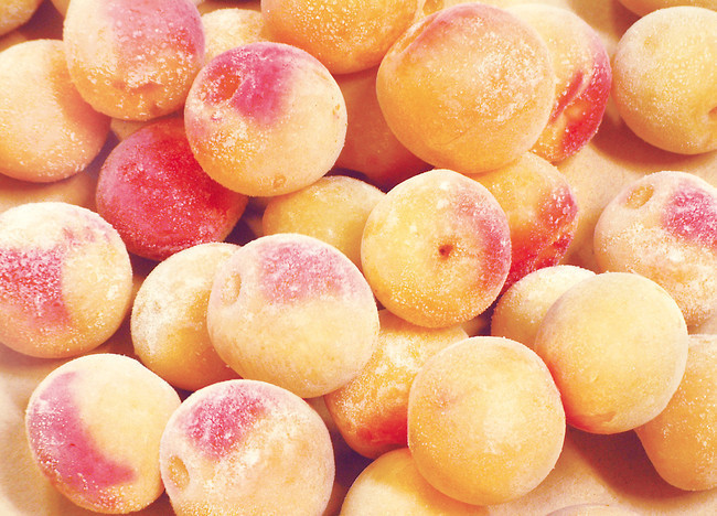 枝を離れた完熟梅は、劣化が早く加工を待つ間にも成分が劣化する大変デリケートな果実。梅ワイン用に収穫された梅の実は-40℃急速冷凍で鮮度を保ちつつ、氷点下で熟成させる。チョーヤではこれを「氷熟製法」と呼ぶ。