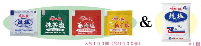 テイクアウトを始めたい、また力を入れたいという飲食店様に料理に添付できる使い勝手の良い「伯方の塩 焼塩」や「味香塩」などの小袋タイプを中心とした伯方の塩セットを抽選で合計300店舗へプレゼントする。