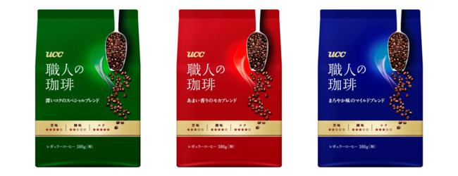UCC上島珈琲(株)(本社神戸市、朝田文彦社長、資本金10億円)は、レギュラーコーヒーから飲料まで幅広いカテゴリーで、熟練の珈琲職人たちのこだわりの味わいをいつでも手軽に味わえる『UCC 職人の珈琲』ブランドのデザインを3月より全面的に刷新する。