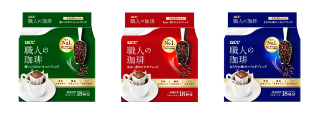 この度のリニューアルでは、『UCC 職人の珈琲』ブランドの豆へのこだわり、おいしさ、香りをより分かりやすく伝えるデザインに変更した。また、品質への強いこだわりとおいしさを豆の量の多さで、さらに湯気が立つ様子から香りの良さを表現した。加えて『UCC 職人の珈琲 ドリップコーヒー 18P』は、売上No.1※2ロゴをわかりやすく強調し、またインスタントコーヒー製品についても、あわせてデザインをリニューアルした。