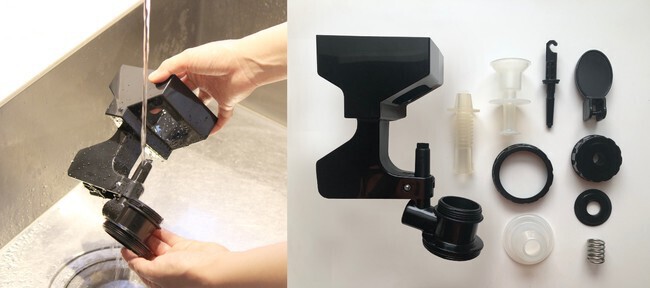 接触頻度を低減!分解、丸洗いもできて衛生的!据え置き型だからドリンクを作る度に紙パックに触れる必要がなく衛生的だ。本体はカンタンに分解、丸洗いできるシンプル構造だ。