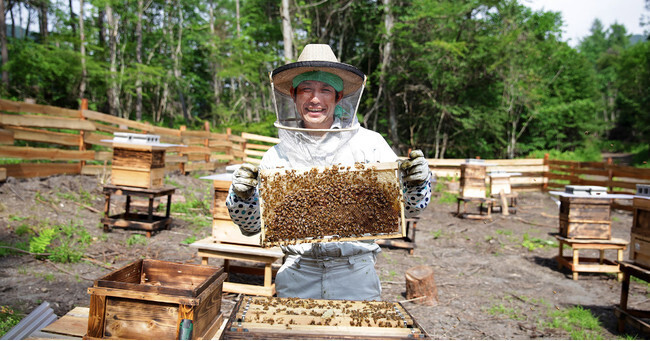 地域の山林と自社運営のキャンプ場を舞台に、生産から理想的消費の流れをつくった仕組みは循環であり、循環をつくるには川上から川下までの複合的な多面展開が必要でした。加えて地域特性を生かして、耕作放棄地での養蜂や百蜜と地元野菜で地場ブランドの特産品づくりにも力を入れている。