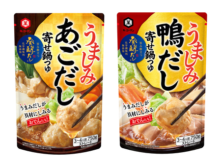 キッコーマン食品(株)は、8月16日に「キッコーマン うましみ あごだし寄せ鍋つゆ」「キッコーマン うましみ 鴨だし寄せ鍋つゆ」を、全国で新発売する。