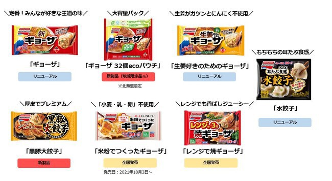 また、一部地域で販売していた「レンジで焼ギョーザ」を同日に全国で発売する。さらに一部店舗及びECで先行発売していた「米粉でつくったギョーザ」を10月3日(日)より全国で発売する。※ギョーザ売上日本一:市販用冷凍•チルド餃子市場2020年度売上金額ベース、味の素冷凍食(株)ギョーザブランド計、同社調べ