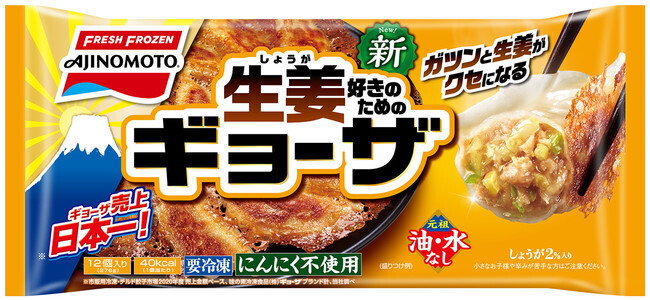 人気の「しょうがギョーザ」は、きざみ生姜の配合量を約2倍に増やし、「生姜好きのためのギョーザ」として生まれ変わる。2018年の発売以降、「しょうがギョーザ」は女性を中心に多くの人に愛されてきたが、生姜好きの人からは<もっと生姜を増やしてほしい>という声をいただいていた。