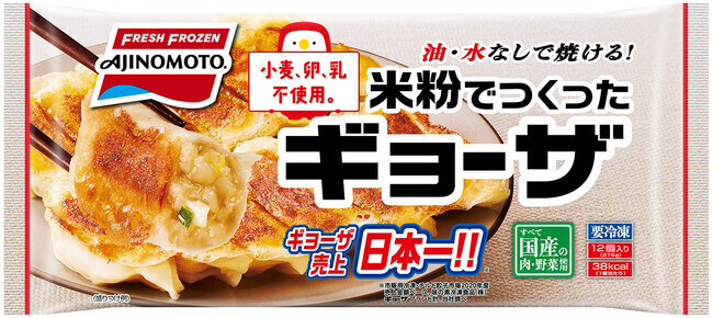 米粉を使った皮に「羽根の素」がついているので、「ギョーザ」や「生姜好きのためのギョーザ」同様に、油•水なしで調理可能だ。国産のお肉と野菜を使用し、ジューシーな中具と米粉の皮のパリパリ、サクサク食感が味わえる。家族みんなで一緒に楽しめる、安心でおいしい「米粉でつくったギョーザ」で、より豊かな食生活に貢献する(別紙プレスリリース参照)。