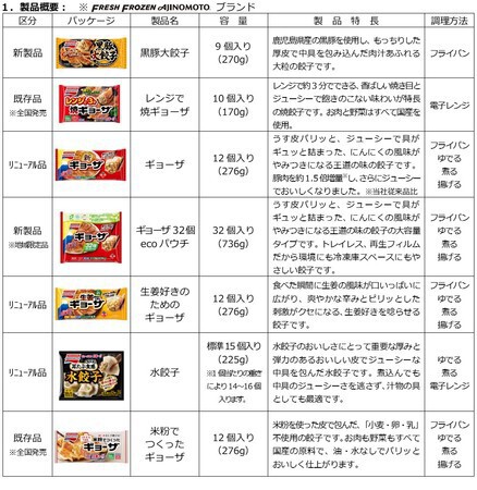 <味の素冷凍食品(株)餃子(ギョーザ)ラインナップ>