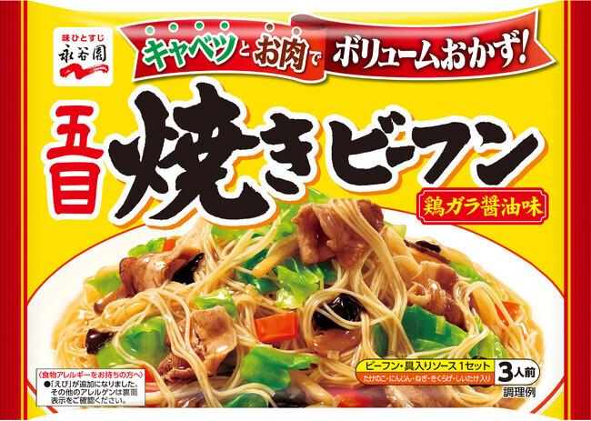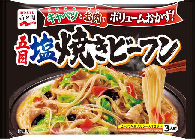 麺 + 野菜 + 肉 で、ごはんに合うボリュームおかず 「五目塩焼きビーフン」新発売!発売中の「五目焼きビーフン」も もっとおいしくリニューアル(永谷園) |