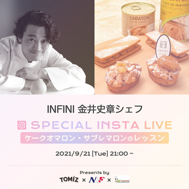 本キャンペーンを記念して、数多くのメディアで取り上げられている話題の人気パティシエ金井史章シェフをお迎えし、9月•10月続けてインスタLIVEを開催する。
