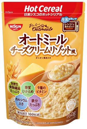 これまでにない“味付きタイプ”のオートミールで、牛乳を入れて電子レンジで温めるだけで、リゾット風の味わいをお楽しみいただける。濃厚でクリーミーなリゾット風の味わいは満足感も高く、朝、昼、夜、小腹満たしになど、時間を選ばずにお召しあがりいただける。