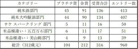 (※1)すべての出品酒の中から選ばれる最高賞(※2)各出品カテゴリーのトップ5又はトップ2より選ばれる賞
