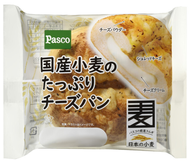 チーズクリーム、シュレッドチーズ、チーズパウダーにより、たっぷりチーズのコク深さが味わえる惣菜パン。国産小麦の小麦粉でもっちり食感に。ゆめちから乳酸菌Ⓡ発酵種でしっとり食感を向上させた。