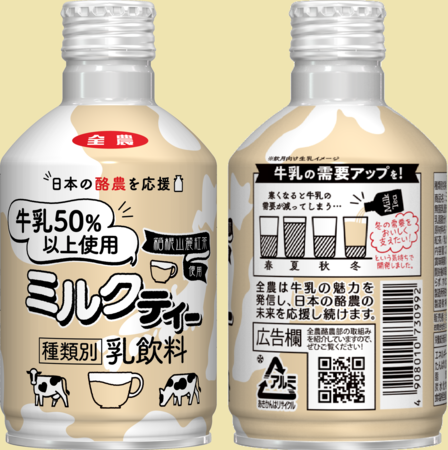 年末年始はミルクティーで日本の酪農を応援 牛乳を50%以上使用したミルクティーを 12月1日より発売(JA全農) |