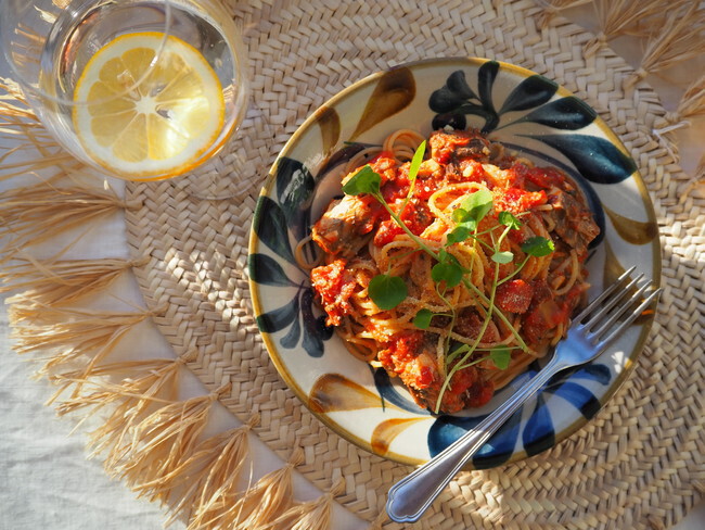 『809miso 白味噌とチーズのシーズニング×簡単サバ缶トマトパスタ』